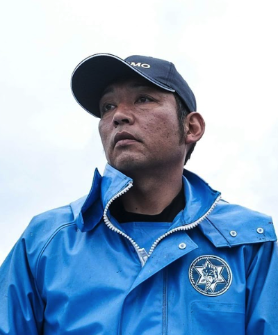 高校卒業後、海上自衛隊に3年間入隊。漁師歴24年。 子供の頃に見た、活気のある浜、笑いのある港、楽しそうな漁師の姿を取り戻そうとしている。『室津定置部会』を立ち上げ、部員全員で魚の資源管理や藻場保全を行って持続可能な漁業を目指している。 室津定置網部会:https://www.instagram.com/murotsu_teichi_bukai/