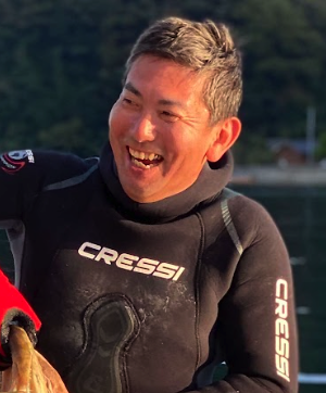 小さい頃の夢は野球選手と漁師。社会人野球で左のエースとして活躍後、40歳を前に夢を追い島根県・海士町へ移住。「魚突き漁師」として独立し、魚にストレスを与えない漁で品質を追求。自然保護やSlowfood、サステナビリティへの意識を大切にし、2024年にはSlow Food Nipponの代表としてTerra Madre(イタリア)に参加。三ツ星レストランをはじめ国内外の料理人からも高い評価を受けている。
