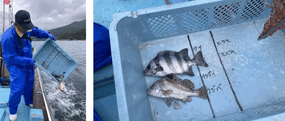 This project focuses on six key species that are central to the Murotsu fishery—striped beakfish (Ishidai), red seabream (Madai), flounder (Hirame), black seabream (Kurodai), brown sweetlips (Koshoudai), and Japanese sea bass (Suzuki). Fishers take the lead in recording and analyzing catch data, working with the prefectural government to conduct stock assessments and revise release sizes and fishing methods accordingly. In addition, by actively harvesting herbivorous species such as rabbitfish (Aigo), which feed on seagrass, the project also contributes to the protection of seagrass habitats and the maintenance of ecosystem balance.