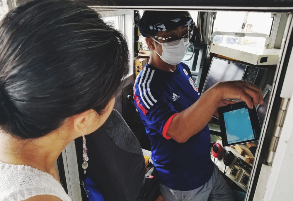 「私たちはサステナブル漁業プロジェクトに取り組むなかで、自主的資源管理のため船上で日々タブレット端末を使い漁獲情報の記録をつけています。数字だけじゃなくて、産地まで誤魔化す人だっているなか、ブロックチェーンを用いればみんなでデータ管理ができるので、信憑性が増すんですよ」